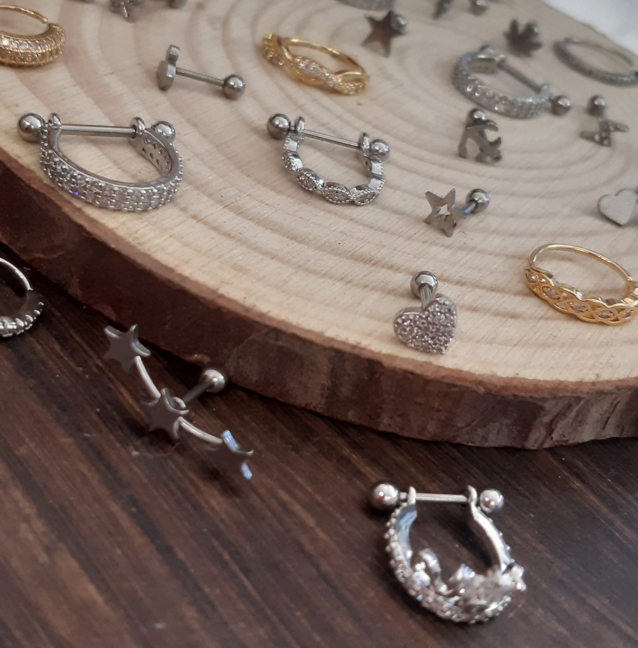 A maior variedade em piercings de aço sirugio e folheados.